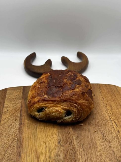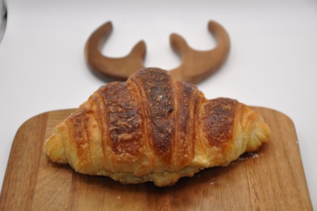 Croissant med marcipan remonce og toppet med flormelis og ristede mandelsplitter